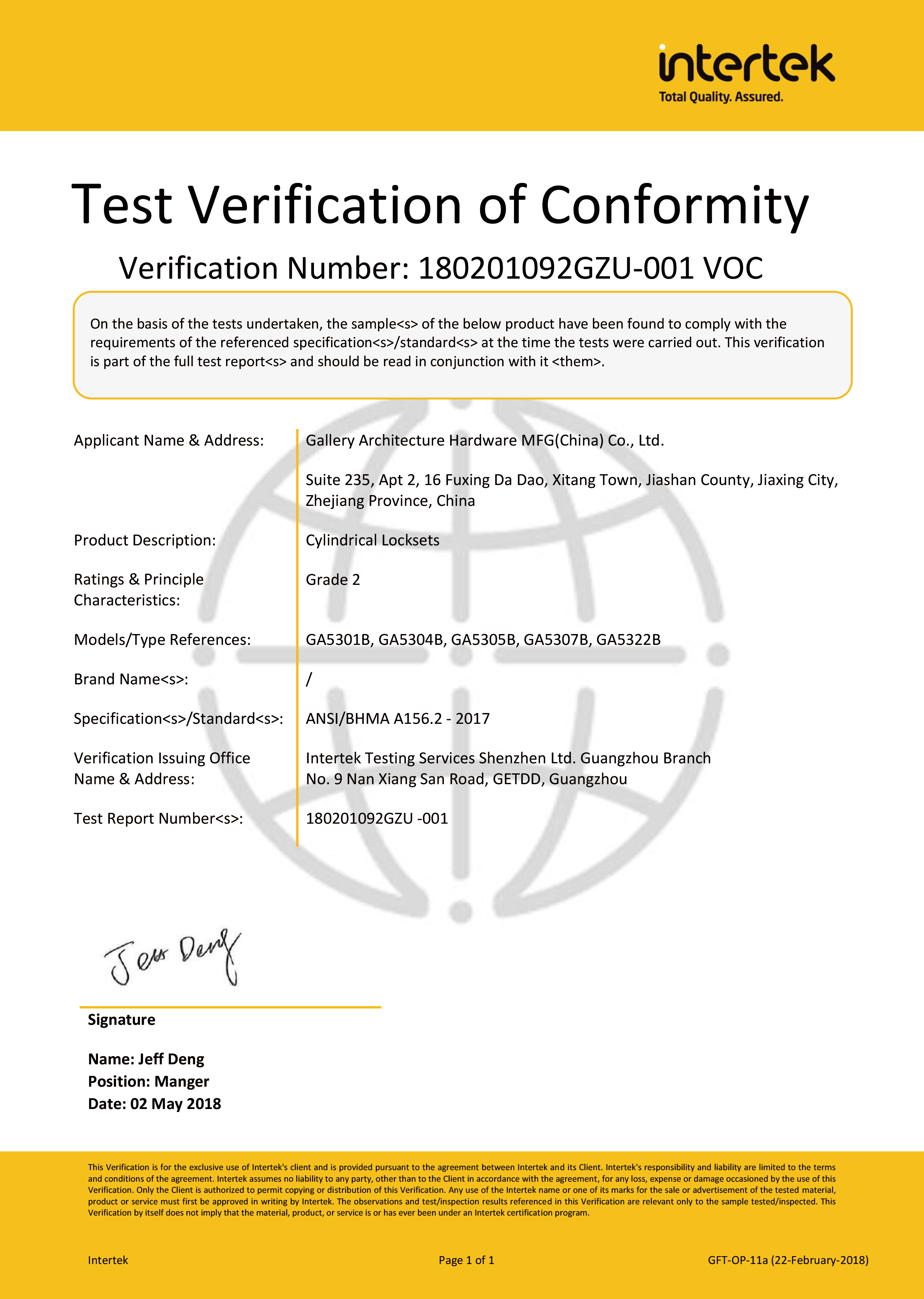 浙江堅(jiān)迪五金制造有限公司始建于 1995 年。自 2003 開始,公司致力于高標(biāo)準(zhǔn)商業(yè)鎖的研發(fā)工作,并于 2006 及 2007 年,8700 插芯鎖系列獲得美國國家標(biāo)準(zhǔn) ANSI A 156.13-2005 一級、ANSI A 156.2-2003 二級和美國 UL 10C3 小時防火測試認(rèn)證。自 1998 年以來,公司不斷提升產(chǎn)品和客戶服務(wù)品質(zhì),并獲得了 ISO 9001 的認(rèn)證。